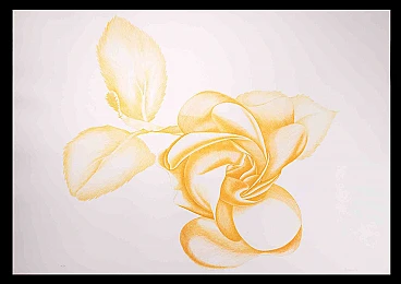 Yellow Rose è un'opera d'arte moderna originale realizzata dall'artista italiano Giacomo Porzano (1925-2006) nel 1972. Acquaforte a colori misti. Firmata a mano e datata in basso a destra. Edizione 32/50. Giacomo Porzano è nato a Lerici il 21 novembre 1925 e morto a Pescosolido il 19 maggio 2006. Dal 1958 vive e lavora a Roma. La sua prima mostra a Roma si tiene alla galleria «L'Obelisco» nel 1958. Espone in numerose gallerie in Italia e all'estero. Le sue opere figurano in collezioni pubbliche e private, italiane e straniere. Nel 1968 partecipa alla XXXIV Biennale Internazionale di Venezia (sala personale). Nel 1975 la Galleria Civica d'Arte Moderna di Palermo ospita una fondamentale mostra antologica. Il suo lavoro è stato curato dai più importanti giornali e critici. Molto importante è la sua attività grafica, anche in volumi, e la collaborazione con giornali e riviste con illustrazioni.
