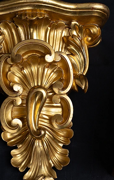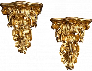 Coppia di mensole Luigi Filippo napoletane in legno intagliato e dorato oro a foglie 24Kt su strato di bolo armeno, '800. Il fronte è scandito da un fitto intaglio a motivo fogliaceo con al centro una conchiglia mentre il piano di appoggio risulta essere marmorizzato. Complete di certificato di autenticità. Siamo a vostra disposizione per ulteriori chiarimenti o particolari fotografici. Spedizione in tutta Italia, Europa e Resto del Mondo in massima sicurezza e tracciabile. La spedizione sarà concordata privatamente.