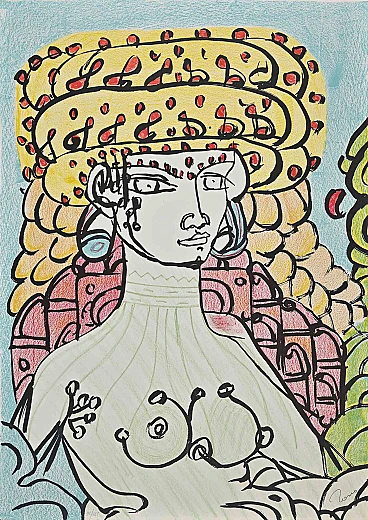 Poppea II è una litografia originale realizzata da Tono Zancanaro nel 1981.Firmata a mano.Numerata. Edizione 92/125.