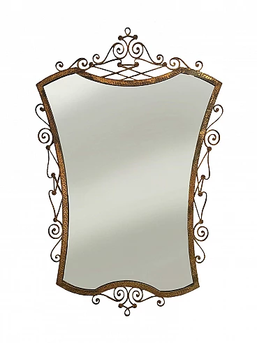 Specchio prodotto negli anni '50 a Torino dall'artista Pier Luigi Colli, noto tra l'altro per le sue collaborazioni con Carlo Mollino, Gio Ponti e altri architetti. La cornice è in ferro battuto dorato, lo specchio non ha alcun difetto, le condizioni generali sono ottime