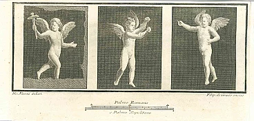 Amorini della serie "Antichità di Ercolano", è un'originale acquaforte su carta realizzata da Filippo de Grado nel XVIII secolo. Firmato sulla targa. Buone condizioni con qualche piegatura. L'acquaforte appartiene alla suite di stampe “Antichità di Ercolano Esposte” (titolo originale: “Le Antichità di Ercolano Esposte”), un volume in otto volumi di incisioni dei reperti provenienti dallo scavo degli scavi di Ercolano nel Regno di Napoli ( ora Campania, Italia). Fu pubblicato tra il 1757 e il 1792 dalla Regia Stamperia e le copie furono consegnate a destinatari selezionati in tutta Europa. Nonostante il titolo, le Antichità di Ercolano riportano oggetti provenienti da tutti gli scavi intrapresi dai Borboni nel Golfo di Napoli. Questi includono Pompei, Stabia e due siti di Ercolano: Resina e Portici. Il re Carlo di Borbone nominò quindici studiosi creando una nuova “Accademia Ercolanese” per studiare i reperti e pubblicare i risultati degli scavi archeologici dei siti. Le incisioni sono di alta qualità e il testo di accompagnamento mostra un'ampia borsa di studio. Furono realizzati da 25 artisti di spicco coinvolti dal Re nella preparazione di disegni e incisioni sui reperti, tra i quali possiamo trovare Giovanni Elia Morghen, Carlo Nolli, Luigi Vanvitelli e Giovanni Battista Casanova. Il libro “Antichità” è stato pensato più per stupire i lettori con la qualità degli oggetti della collezione del Re di Napoli che da destinare alla ricerca, seguendo e incrementando l'interesse della società del Settecento per la cultura classica e l'Arte in particolare. Attraverso l'esaltazione del concetto classico di proporzioni e armonia , il libro fu di ispirazione al movimento neoclassico in Europa, dando ad artisti e decoratori l'accesso a un vasto negozio di motivi ellenistici. Rif.: National Gallery (Washington), Mark J. Millard Architectural, IV (2000), n. 1; L. Garcia y Garcia, Nova bibliotheca pompeiana (2 v., 1998); Royal Institute of British Architects, British Architectural Library ... Primi libri stampati, 1 (1994), n. 112. U. Pannuti, 'Incisori e disegnatori della Stamperia Reale di Napoli nel secolo XVIII: la pubblicazione delle Antichità di Ercolano', in Xenia antiqua, 9 (2000), p. 151-178; V. Trombetta, 'L'edizione de Le Antichità di Ercolano esposte' in Rendiconti dell'Accademia di Archeologia, lettere e belle arti di Napoli, 59 (1984), p.151-172.