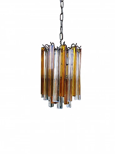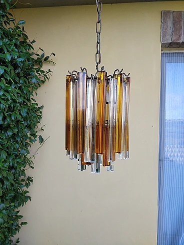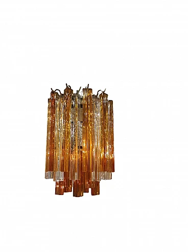 Lampadario in vetro arancione e trasparente di Venini, anni '70