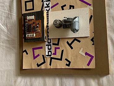 R. Volpini, Collage con parti elettroniche, tecnica mista, anni '60