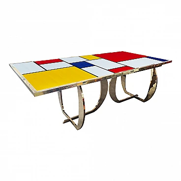 Tavolo con piano in vetro di Murano in stile Mondrian, anni '90