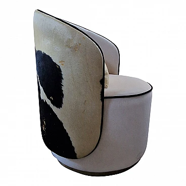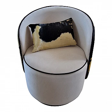 Poltrona a pozzetto in velluto bianco, anni '90