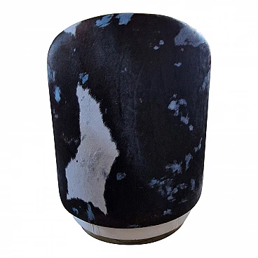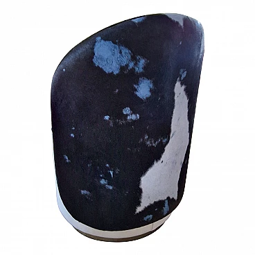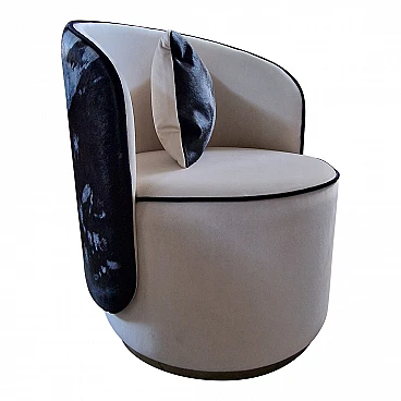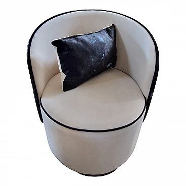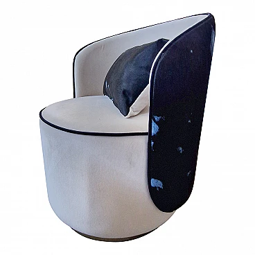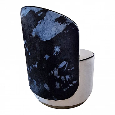 Poltrona a pozzetto in velluto bianco e cavallino blu, anni '80