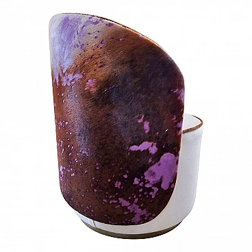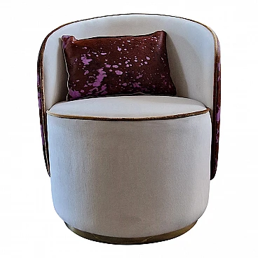 Poltrona in velluto bianco e cavallino bordeaux e rosa, anni '80