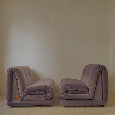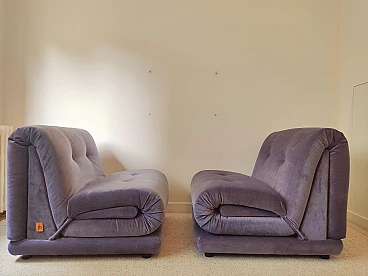Coppia di poltrone PD in velluto viola di Italian Salotti, anni '70