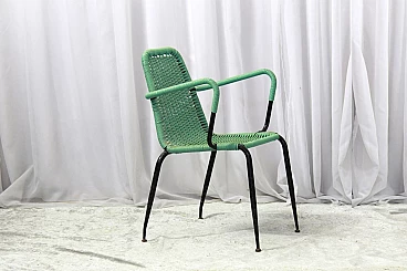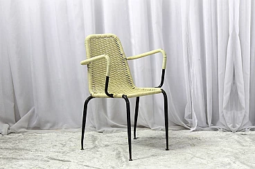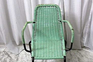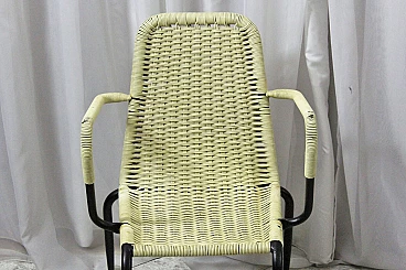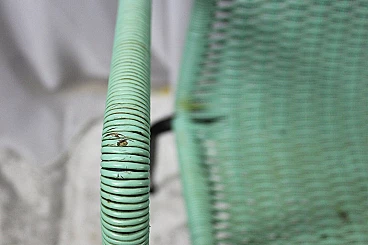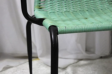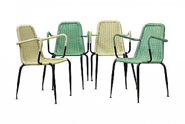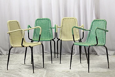 Set di 4 sedie in plastica intrecciata degli anni 50, Due di colore crema e due verde chiaro. Struttura in ferro verniciato di nero. Segni del tempo su sedute, bellissime. #superaffare