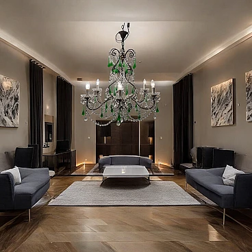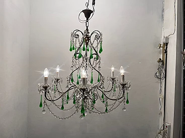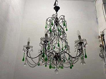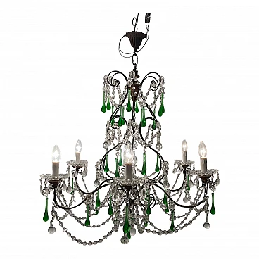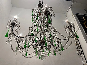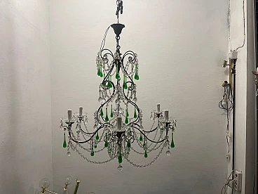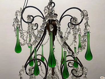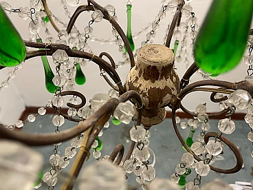 Lampadario grande con gocce in vetro di Murano verde, anni '40. Prezzo - € 1 500,00 per articolo Progettazione anni '20-'40, Italia.