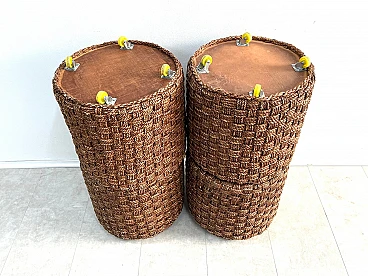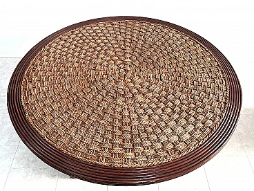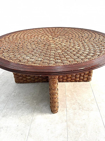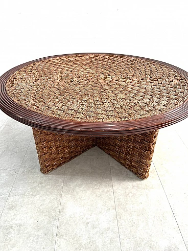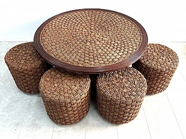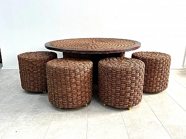 Tavolino da caffè con sgabelli in corda intrecciata e legno, anni '60