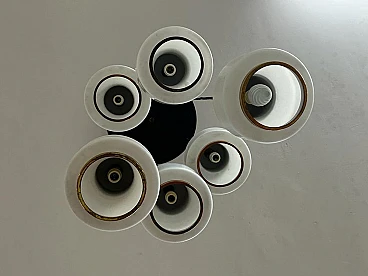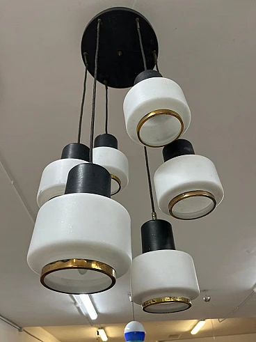 Lampadario a sei luci in ottone e vetro opalino di Stilnovo, anni '50