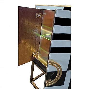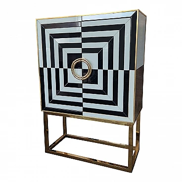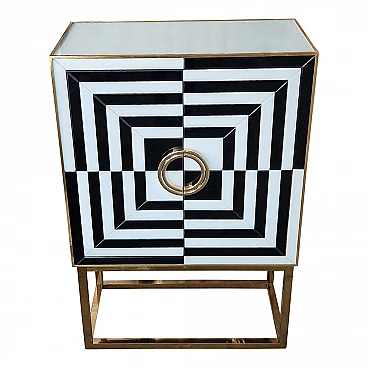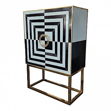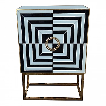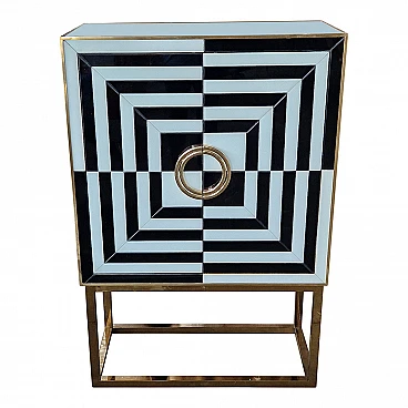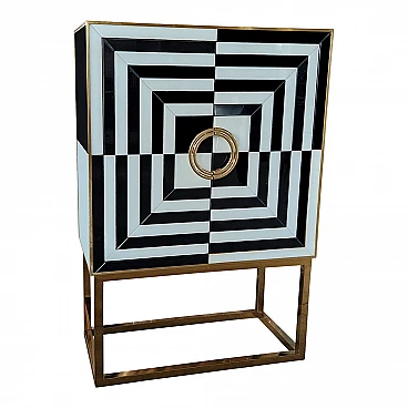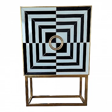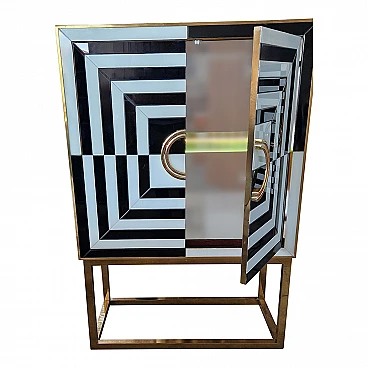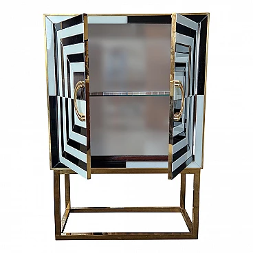 Mobile bar in metallo dorato e vetro bianco e nero, anni '80