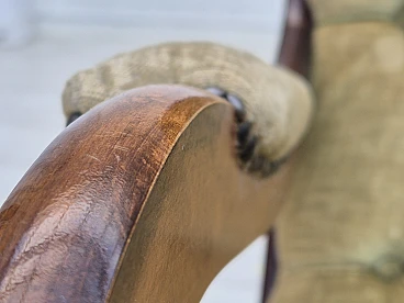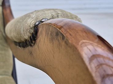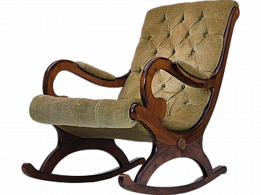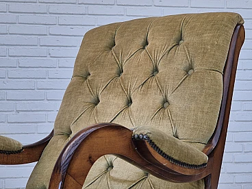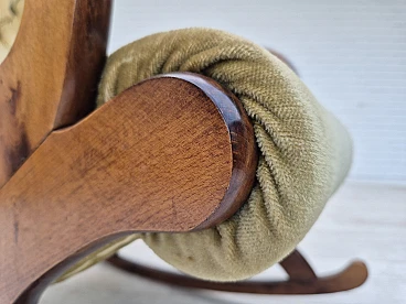 Sedia a dondolo scandinava in faggio e velluto, anni '50