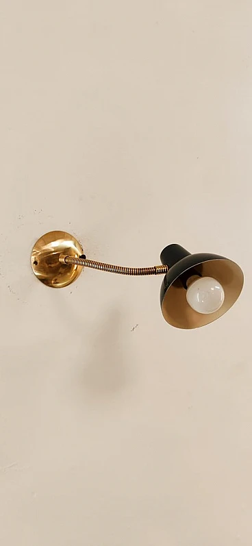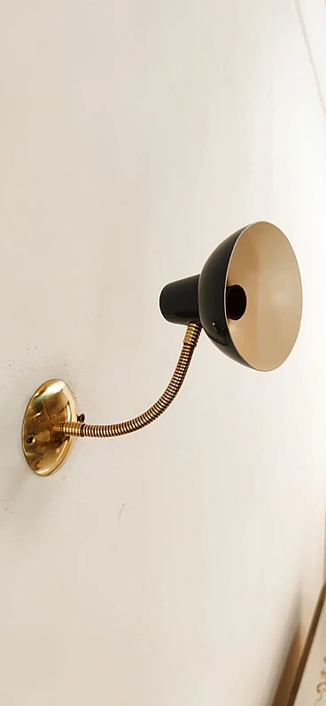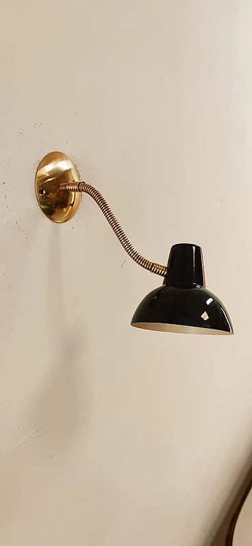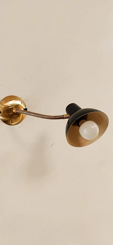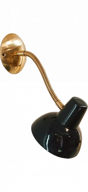 Applique flessibile in ottone e alluminio laccato nero, anni '60