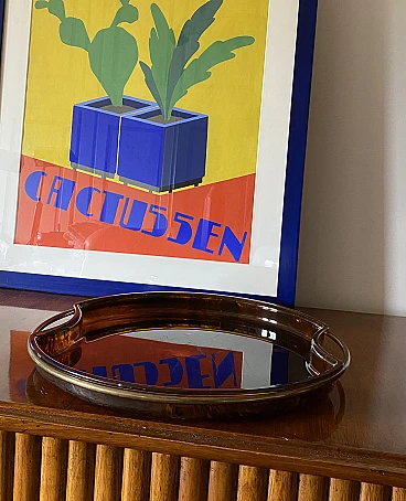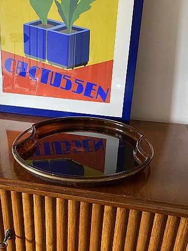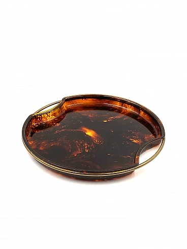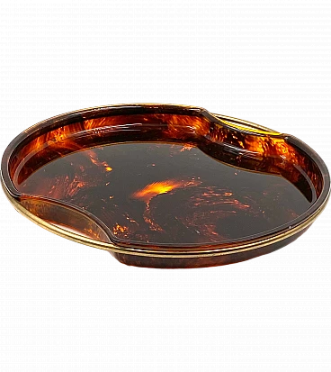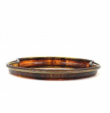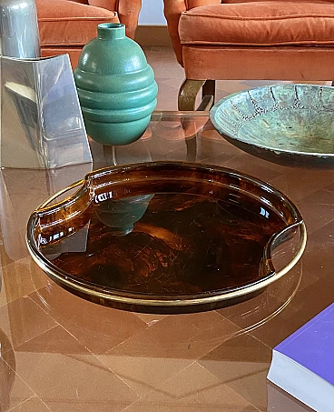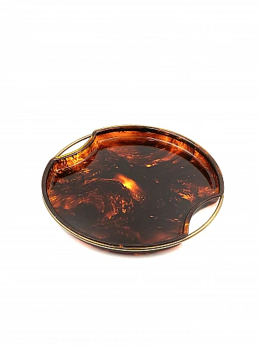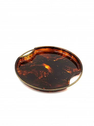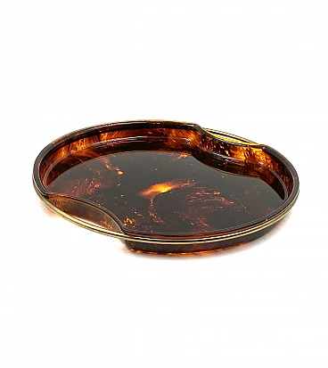 Vassoio in ottone e lucite tartarugata di Guzzini, anni '70