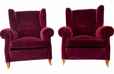 Coppia di poltrone Chesterfield in velluto, '800