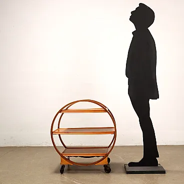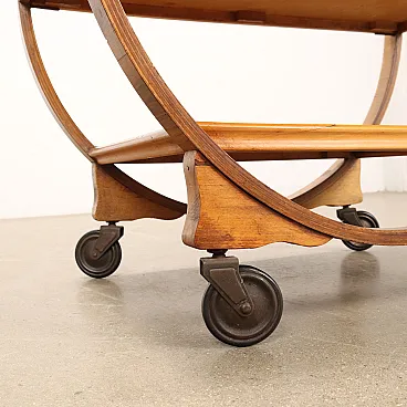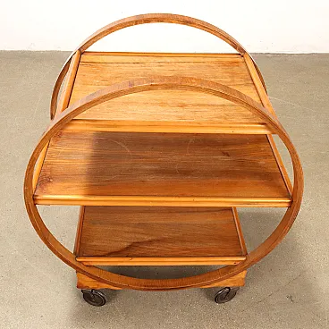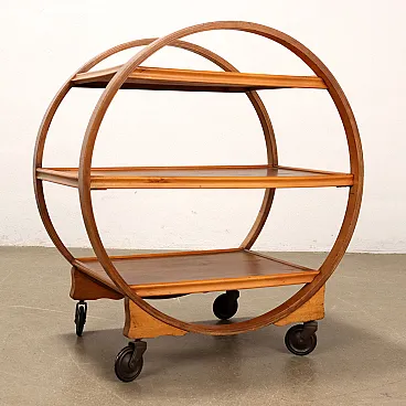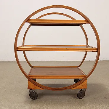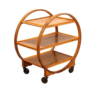 Carrello bar in legno multistrato curvato con 3 ripiani, anni '30