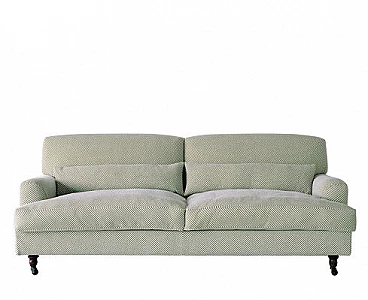 Rivisitazione dei classici modelli inglesi, il divano Raffles evoca con eleganza e forme tradizionali le confortevoli atmosfere degli interni british. Il progetto è di Vico Magistretti per De Padova (1988). Misure: l. 210 x p. 112 x h. 83 |hs 45 cm Tessuto misto Lino cotone grigio e imbottitura cuscini in piuma d’oca.