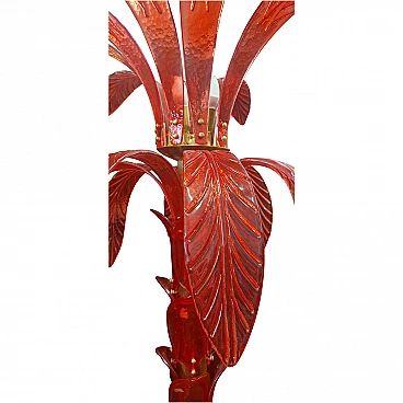Lampada da terra in vetro di Murano a forma di palma rossa, anni '90