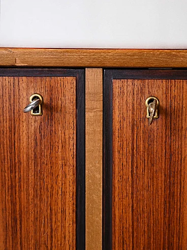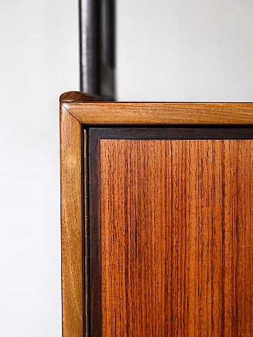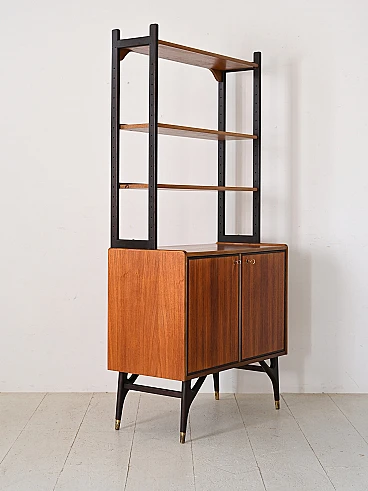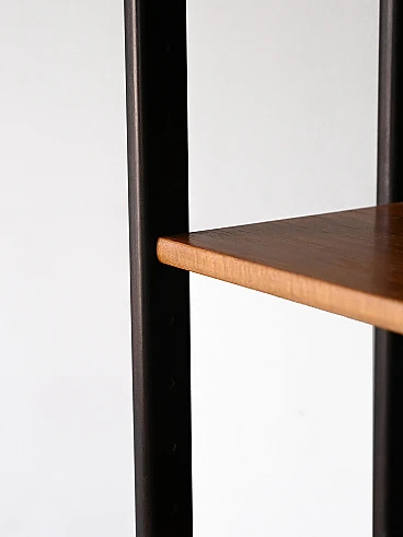 Mobile vintage con scaffalature a giorno. Questa elegante libreria scandinava è realizzata in legno di teak, con i profili laterali in rovere più chiaro. È composta da 5 scaffalature a giorno, con un pannello in legno sul retro che non ricopre interamente la struttura, ma lascia scoperte le ultime due scaffalature, creando un effetto alleggerito e di maggiore profondità visiva. Lo stile di questa libreria riflette l'estetica scandinava, caratterizzata da linee pulite, materiali naturali e un approccio minimalista al design. L'uso del teak e del rovere conferisce all'arredo un aspetto caldo e vintage, perfetto per ambienti moderni e accoglienti. Grazie alle sue dimensioni e alla sua struttura aperta, questa libreria scandinava può essere utilizzata in molteplici contesti: come mobile espositivo in un soggiorno, come scaffale per libri in uno studio, o come elemento di arredo in una camera da letto o in un ufficio. Buone condizioni. È stato fatto un restauro conservativo utilizzando materiali naturali. Potrebbe presentare dei segni del tempo. Per piacere presta attenzione alle fotografie.