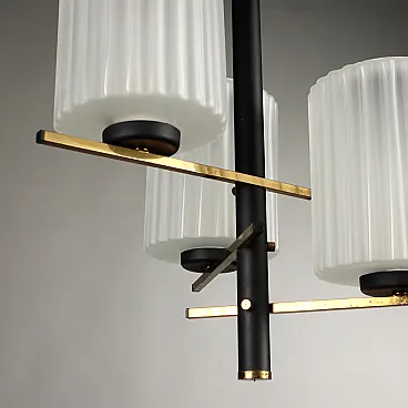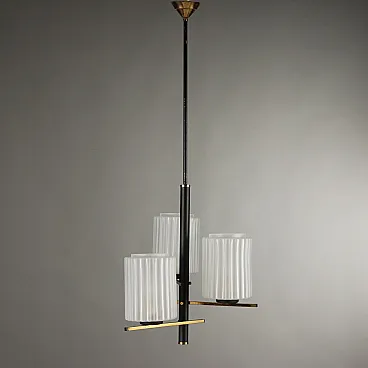Lampadario a 3 luci in ottone con diffusori in vetro, anni '50