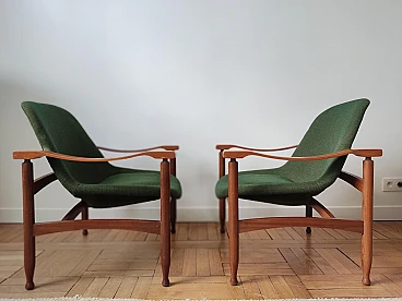 Coppia di poltrone Tiki Arm in legno di Busnelli, anni '60