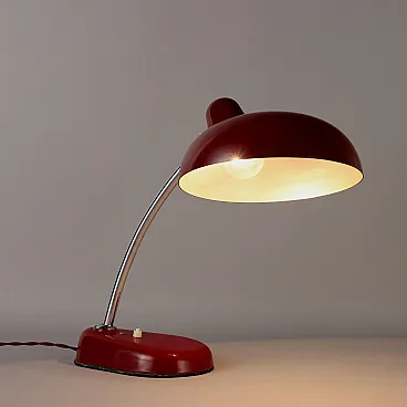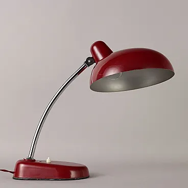 Lampada da tavolo in alluminio smaltato rosso e metallo, anni '50