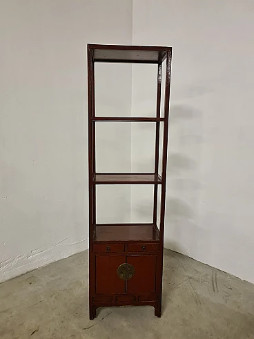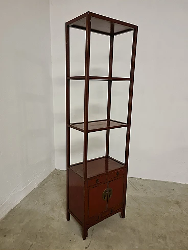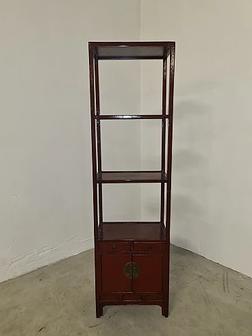 Libreria in legno laccato con vano portaoggetti e cassetti, anni '40