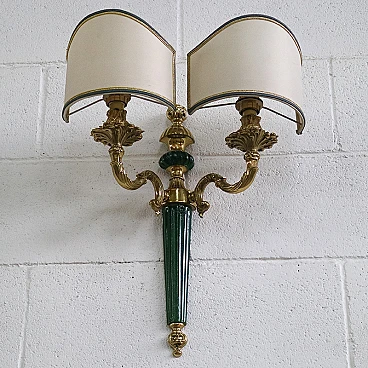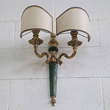 Applique a due luci in metallo dorato e laccatura verde, anni '40