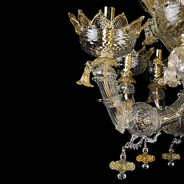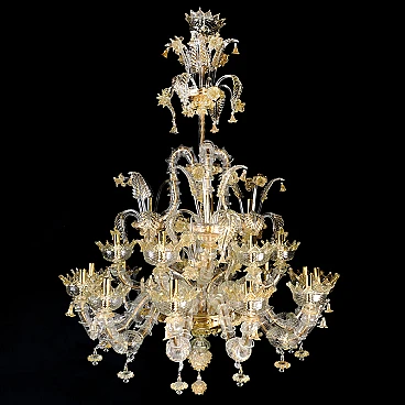 Lampadario in vetro di Murano e cristallo dorato, anni '40