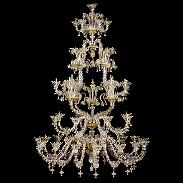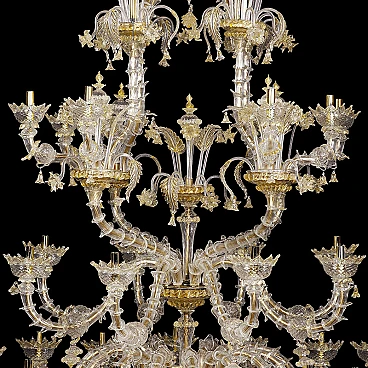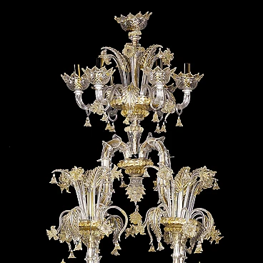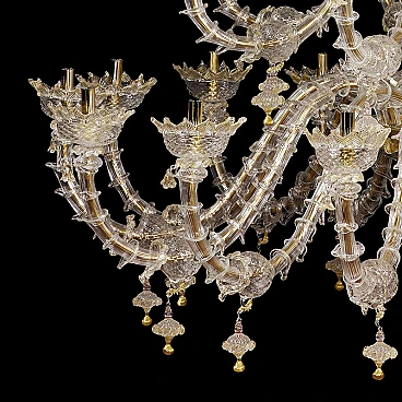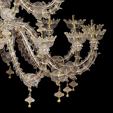 Lampadario Rezzonico in vetro e decorazioni in cristallo, anni '20