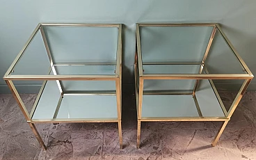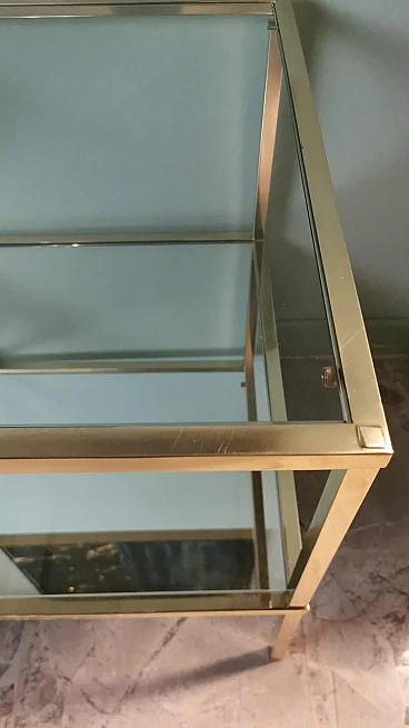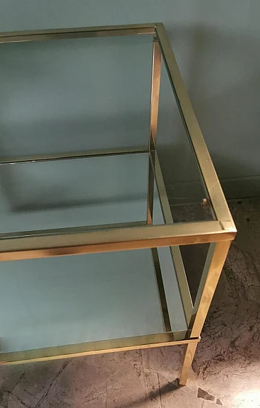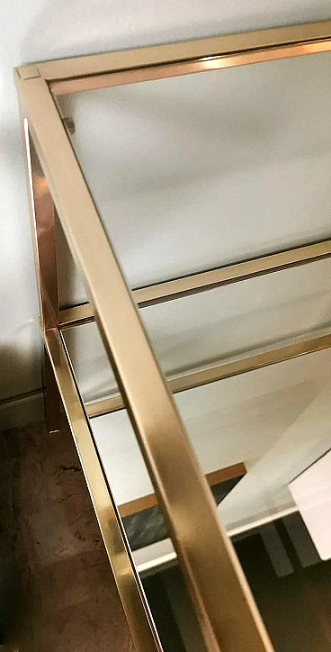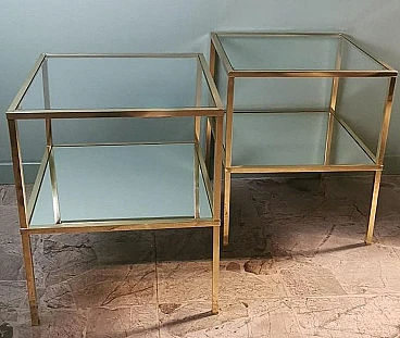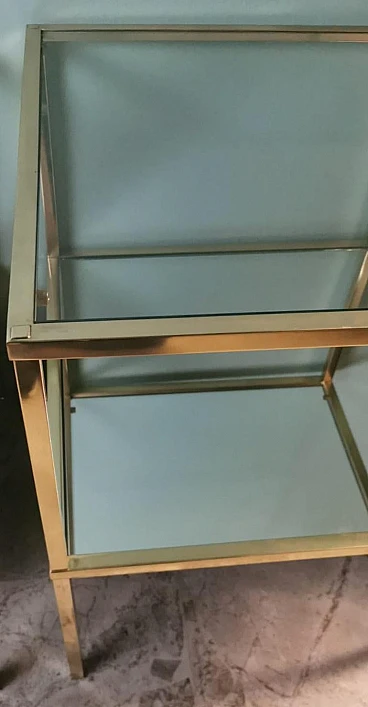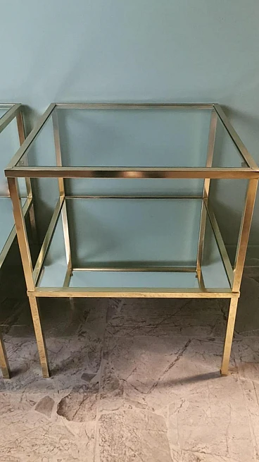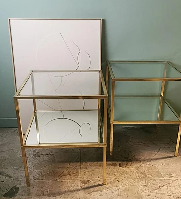 Ti consigliamo gentilmente di leggere l'intera descrizione, in quanto ci proponiamo di fornire informazioni tecniche e storiche dettagliate per garantire l'autenticità dei nostri oggetti. Questa raffinata e originale coppia di tavolini in ottone è caratterizzata da una struttura lineare realizzata in solido ottone lucido a sezione quadrata. La superficie superiore è costituita da uno spesso pannello di vetro, mentre uno specchio è posizionato a metà della struttura, creando leggerezza visiva e un tocco sofisticato. Questi elementi conferiscono ai tavolini un aspetto elegante e moderno. Realizzate nello stile del famoso designer italiano Willy Rizzo, sono state prodotte tra il 1970 e il 1975 in un laboratorio artigianale della Brianza (Lombardia, Italia) e rappresentano un classico esempio del design modernista di quel periodo, caratterizzato da linee pulite, materiali di alta qualità e un'estetica elegante e minimalista. La Brianza, un'area che comprende diverse città come Meda, Desio e Cantù, è famosa per la produzione di mobili di alta qualità. Molte aziende di arredamento in questa attiva zona della Lombardia producevano pezzi in stile Willy Rizzo, noti per l'elevata attenzione ai dettagli e l'uso di materiali pregiati. Willy Rizzo (1928-2013) è particolarmente noto per i suoi tavolini in ottone e vetro. Rizzo ha iniziato la sua carriera come fotografo, lavorando per importanti riviste di moda e ritratti, tra cui "Paris Match". La sua esperienza nel campo della fotografia ha influenzato il suo occhio per il design e la composizione, portandolo a creare mobili che combinassero la funzionalità con un'estetica visivamente accattivante. Nel corso della sua carriera Willy Rizzo ha collaborato con diverse aziende e laboratori artigianali di prestigio, contribuendo a portare i suoi disegni unici sul mercato internazionale. I tavolini di Rizzo sono spesso caratterizzati da linee pulite e geometriche, utilizzando cornici in ottone lucido per creare un effetto lussuoso. Gli artigiani che hanno creato questa coppia di tavolini hanno seguito con estrema abilità i principi del design di Rizzo, giocando con materiali contrastanti e finiture di lusso. Utilizzando l'ottone lucido, hanno conferito robustezza e un tocco di opulenza, creando tavolini funzionali e decorativi che sono diventati un'icona per la loro eleganza senza tempo e la qualità artigianale. In conclusione, le botteghe e le piccole imprese della Brianza hanno avuto un ruolo cruciale nella produzione dei tavolini in stile Willy Rizzo, grazie alla lunga tradizione artigianale e alla presenza di numerosi designer e fabbriche specializzate. Questi mobili, noti per la loro eleganza e qualità, riflettono l'eccellenza del design italiano. I due tavoli sono in buone condizioni. Larghezza 54 cm, profondità 54 cm, altezza 65 cm. Per tutte le nostre spedizioni utilizziamo materiali di imballaggio speciali (casse di legno su misura, polistirolo, etc.) per garantire la massima protezione e sicurezza degli articoli.