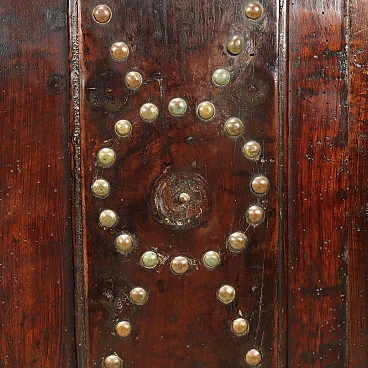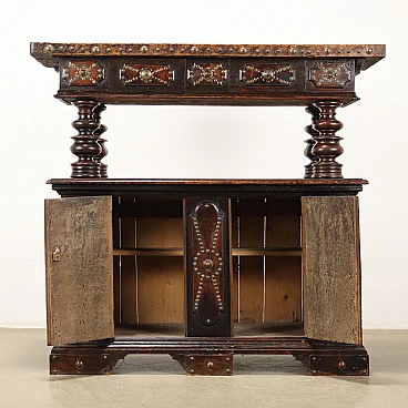 Credenza con alzata in stile Barocco in noce con formelle e borchie