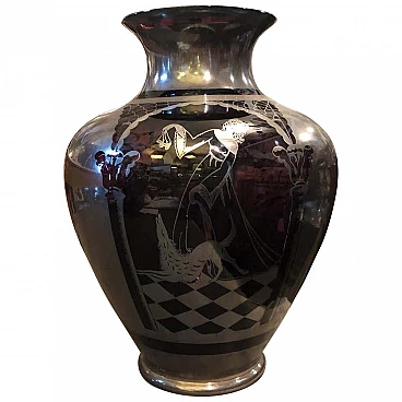 Un enorme vaso Art Déco prodotto in Italia negli anni Trenta del Novecento. Il vetro viola e l'argento sono in perfette condizioni.