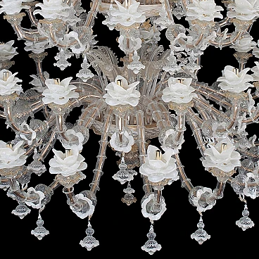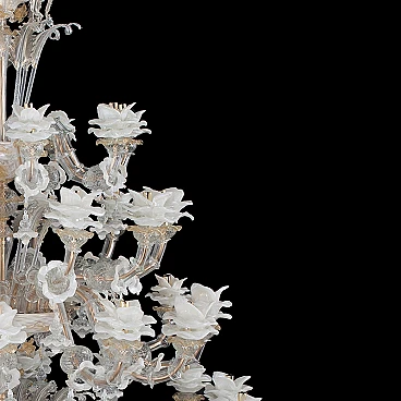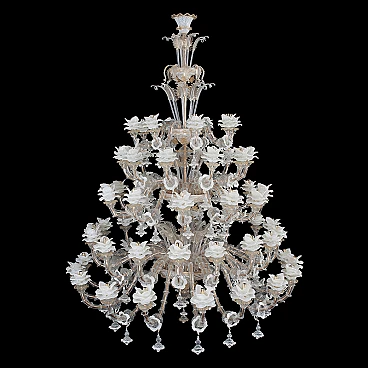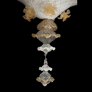 Lampadario in vetro con motivi floreali e fogliacei, anni '40