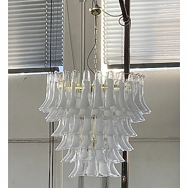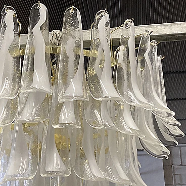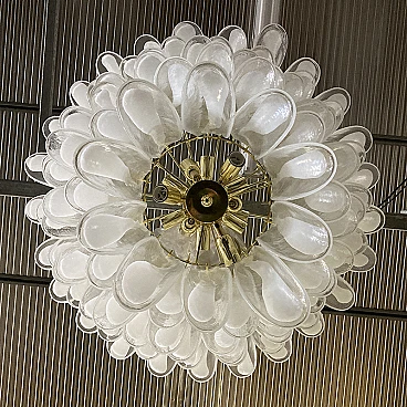 Lampadario a 18 luci in ottone e vetro di Murano bianco, anni '20