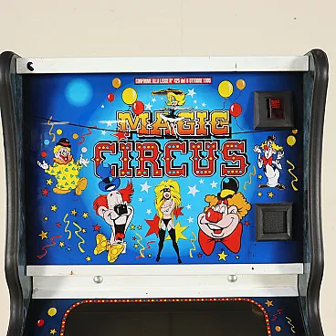 Videogioco Magic Circus in legno ricoperto di formica, anni '80