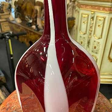 Vaso in vetro di Murano rosso e bianco di Carlo Moretti, anni '80