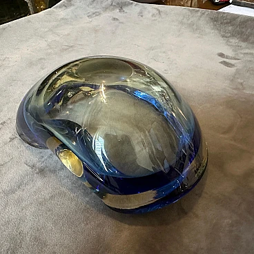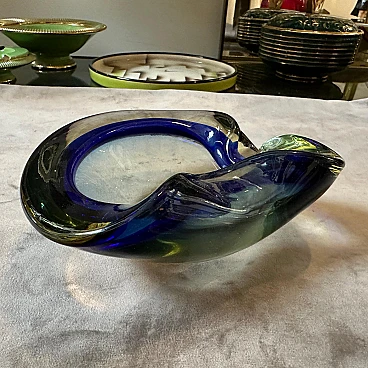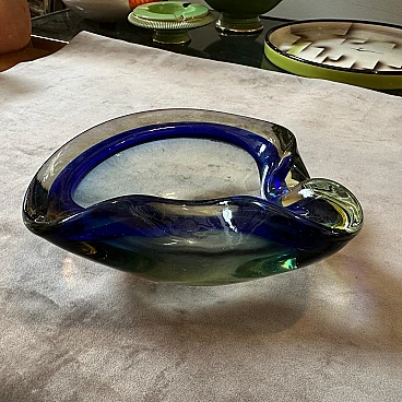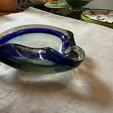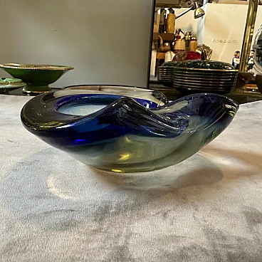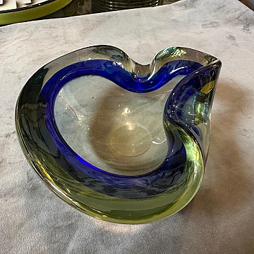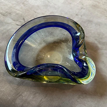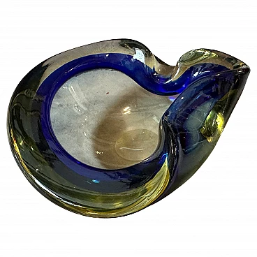 Posacenere in vetro di Murano giallo e blu di F. Poli, anni '70