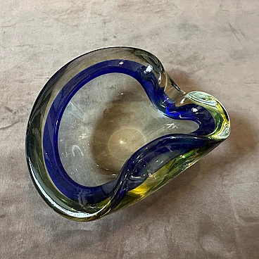 Posacenere in vetro di Murano giallo e blu di F. Poli, anni '70 1