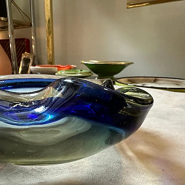 Posacenere in vetro di Murano giallo e blu di F. Poli, anni '70 6