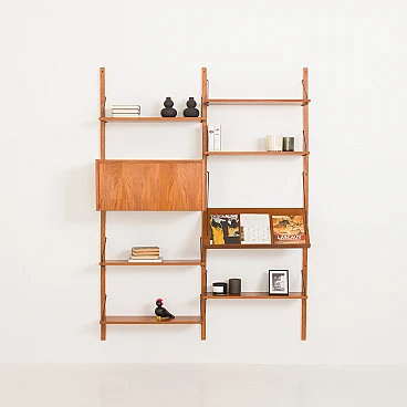 Parete attrezzata in teak con ribalta in stile Cadovius, anni '60 5