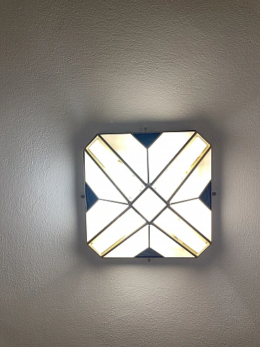 Applique piramidale con vetro opalino bianco e metallo oro, Anni '70