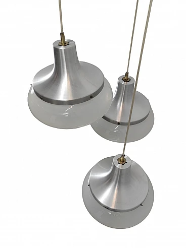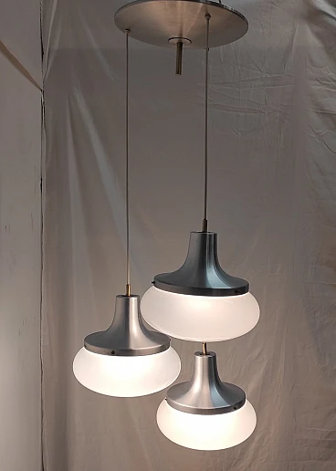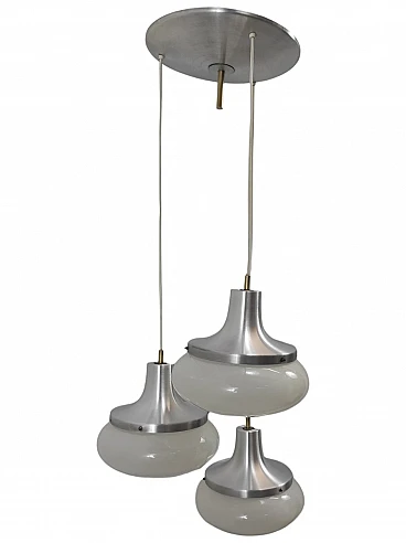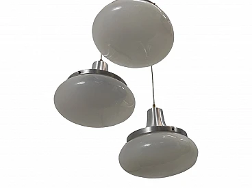 Lampadario a 3 luci in metallo e vetro di Stilux Milano, anni '80