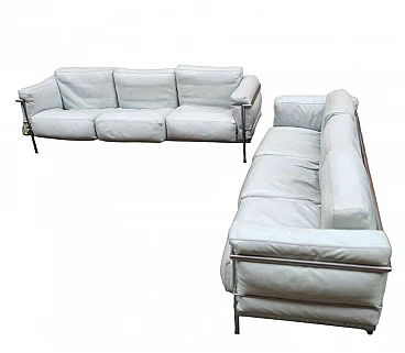 Divano LC3 in pelle e acciaio di Le Corbusier per Alivar, anni '80