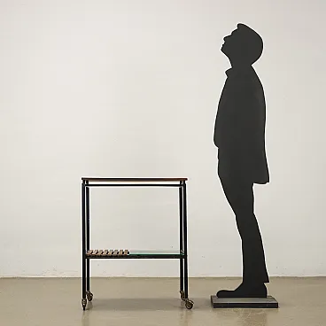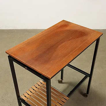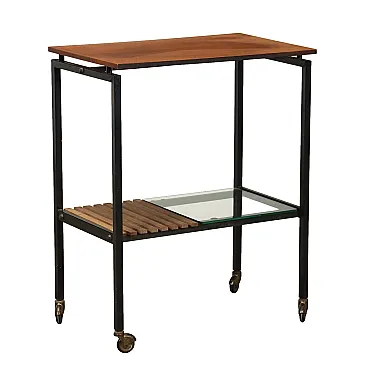 Carrello a doppio piano in teak, metallo smaltato e vetro, anni '60