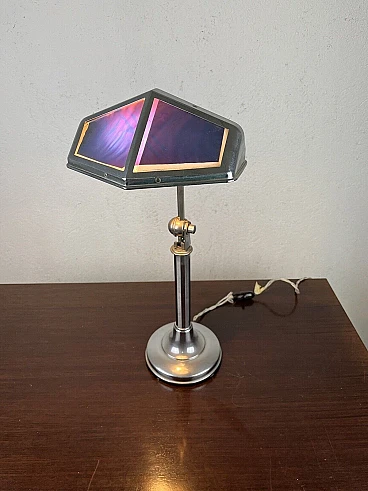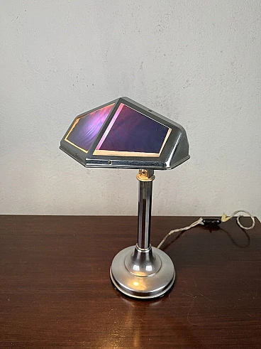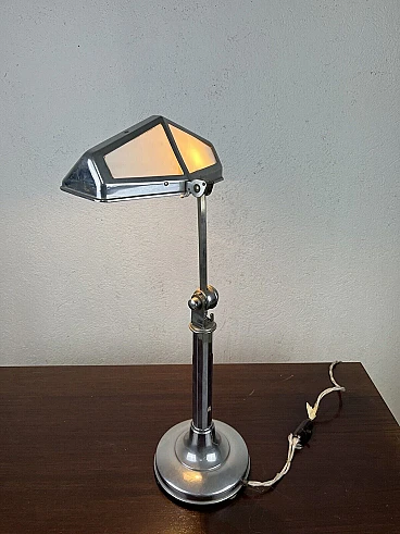 Lampada da tavolo Art Déco in acciaio e vetro di Pirouette, anni '30