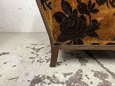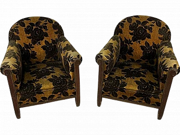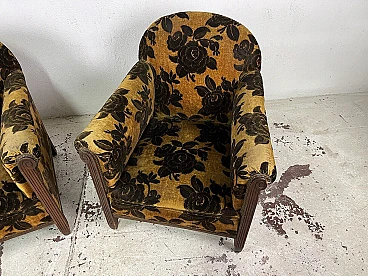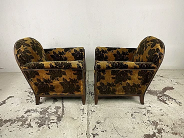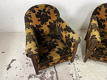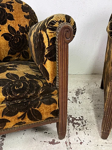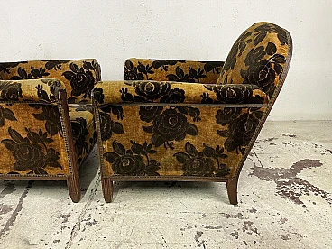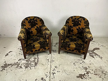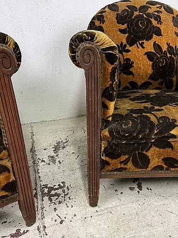 Coppia di poltrone in legno e velluto damascato, anni '30