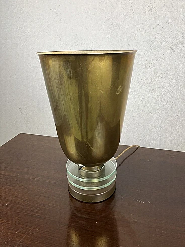 Lampada da tavolo in ottone e vetro, anni '50